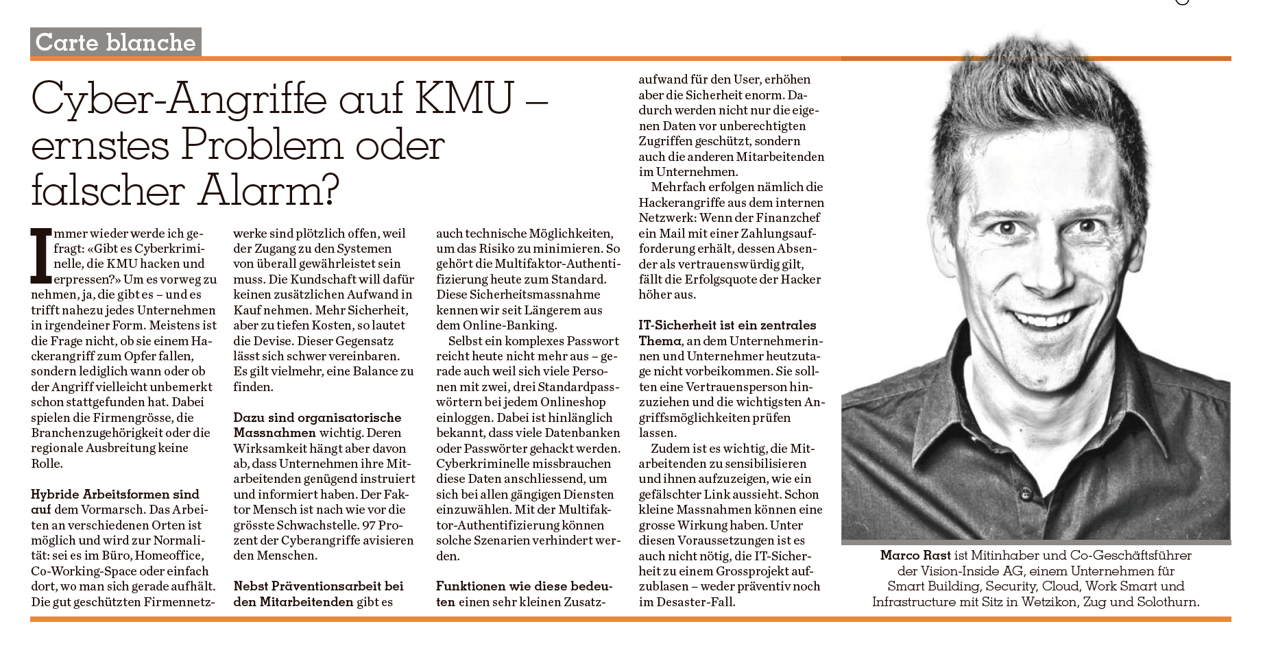 Marco Rast über Hackerangriffe, Cyber Security und Multifaktor-Authentifizierung. Ein Thema, das immer relevanter wird, insbesondere für KMU’s.