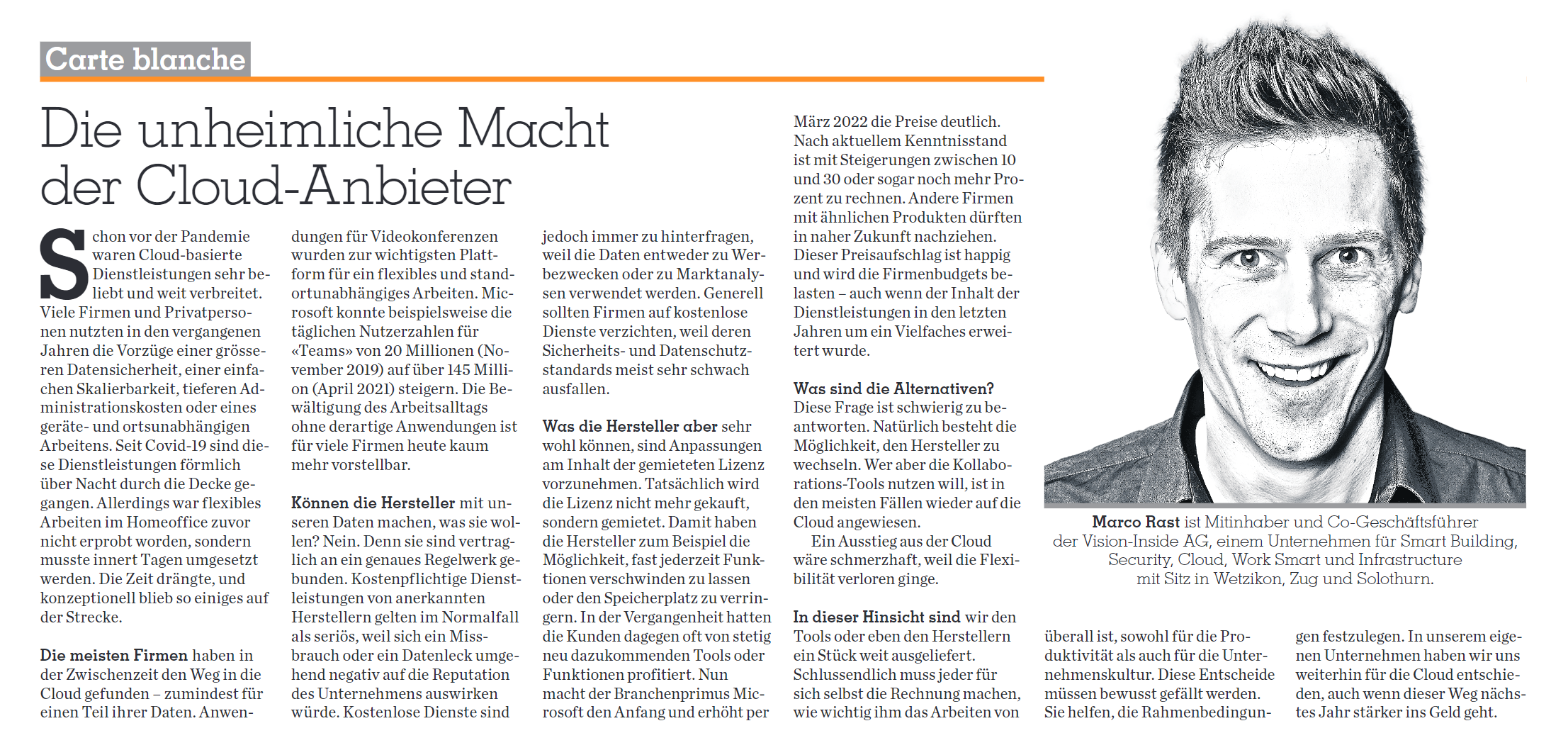 Gibt es denn überhaupt noch Alternativen zu den grossen Cloud-Anbietern? Auf diese und weitere spannende Fragen ist Marco Rast in der jüngsten Kolumne nachgegangen.