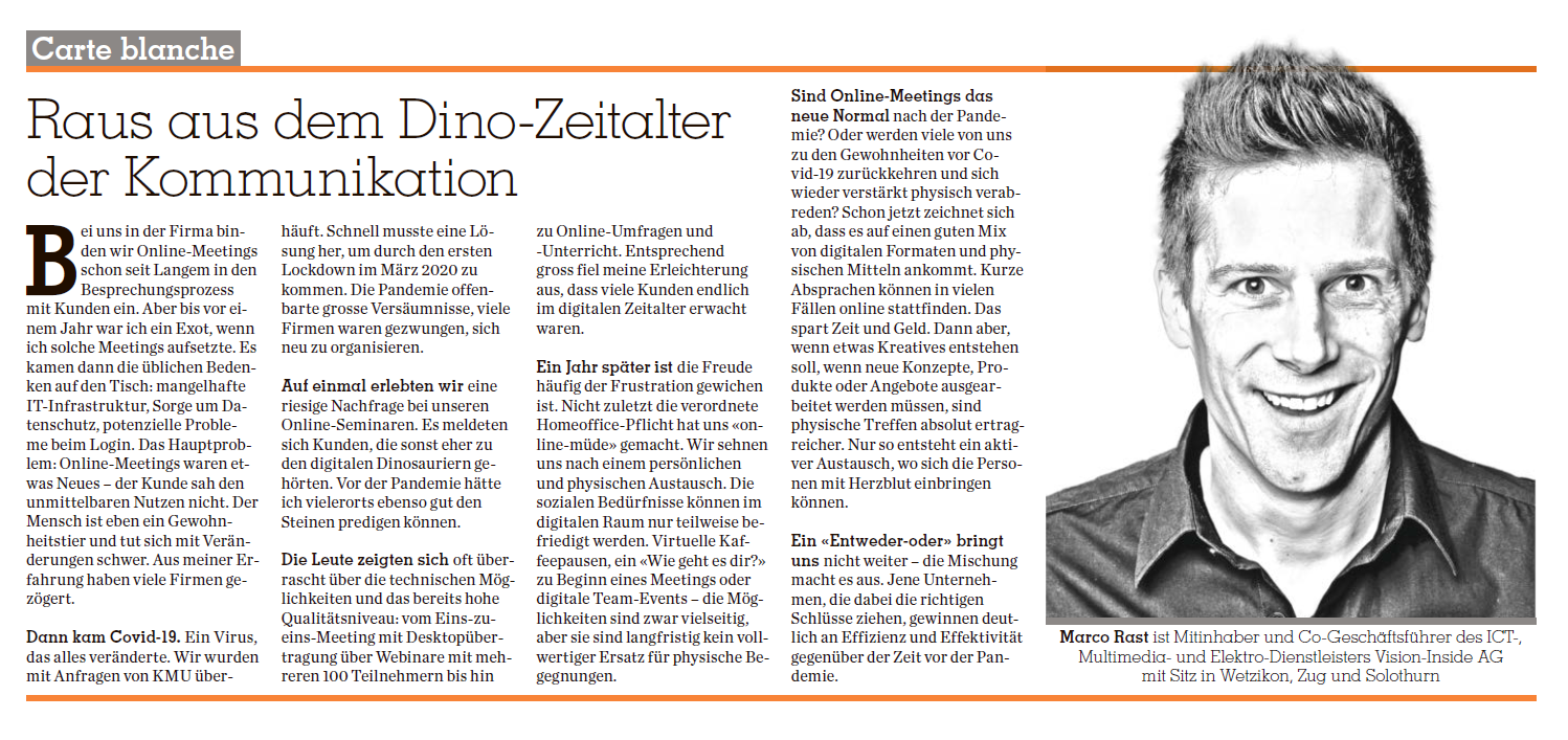 Marco Rast spricht in einer Kolumne über Kommunikationstools und darüber, ob Online-Meetings nach der Pandemie zum neuen «Normal» gehören.